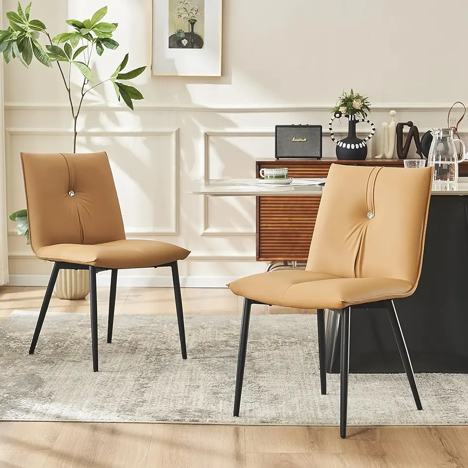 YOUTASTE Dining Chairs Set of 2 Mid Century Modern Upholstered Leather Kitchen Chairs Soft Padded Side Chairs Dinner Chairs with Metal Legs for Living Room Bedroom, Camel