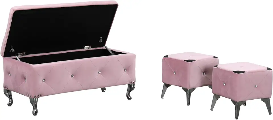 Ottoman with Storage, Storage Bench for Bedroom, Upholstered Bench Bed Bench with Pressure Rod, Bench with Crystal Buttons for Bedroom/Living Room/Entryway-Pink
