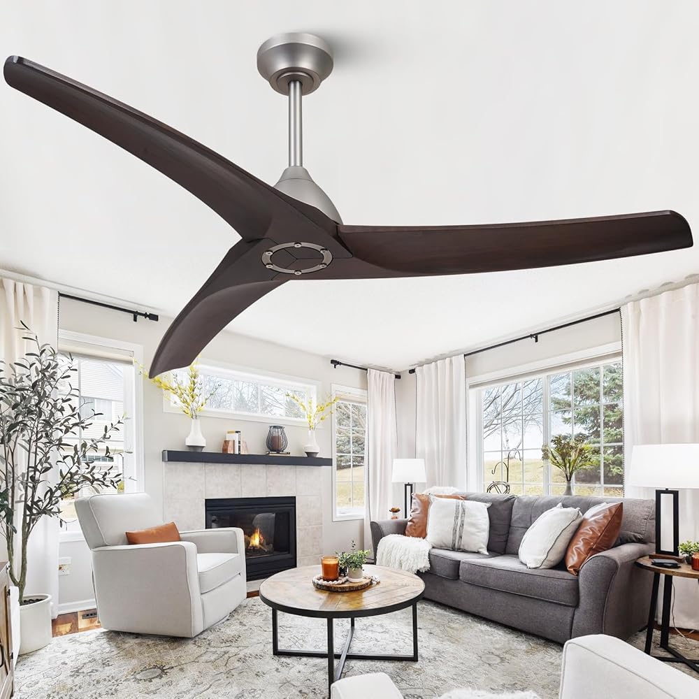 54 inch Ceiling Fan no Light,Wood Ceiling Fans with 6-Speed Reversible DC Motor,Timer,Unique Ceiling Fan for Kitchen Bedroom Living Room Etc.Silver and Brown