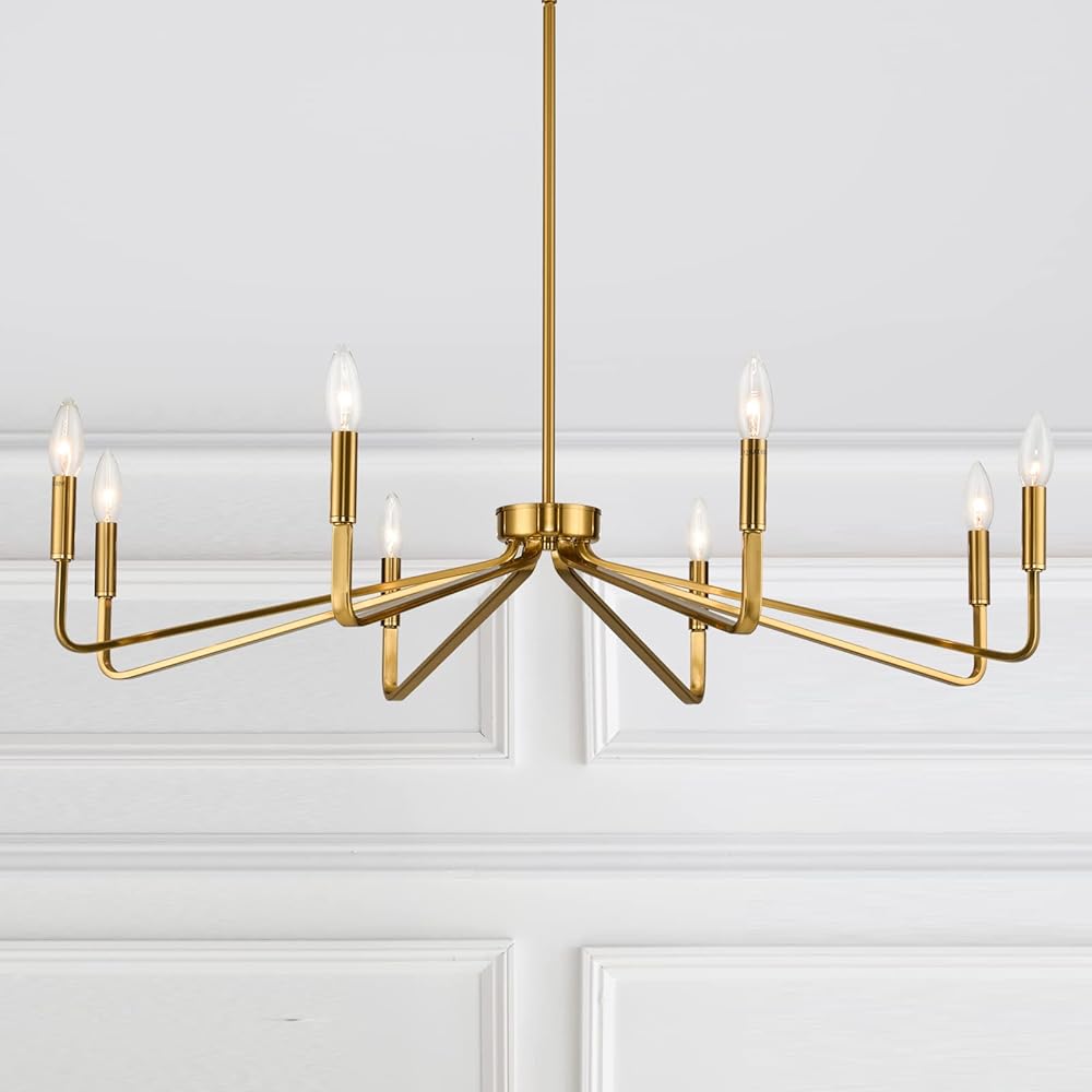 38" Gold Chandeliers for Dining Room, 8-Light Modern Farmhouse Chandelier Light Fixture, Brushed Brass Industrial Candle Lighting Hanging Ceiling for Living Room Bar Kitchen Island Lights