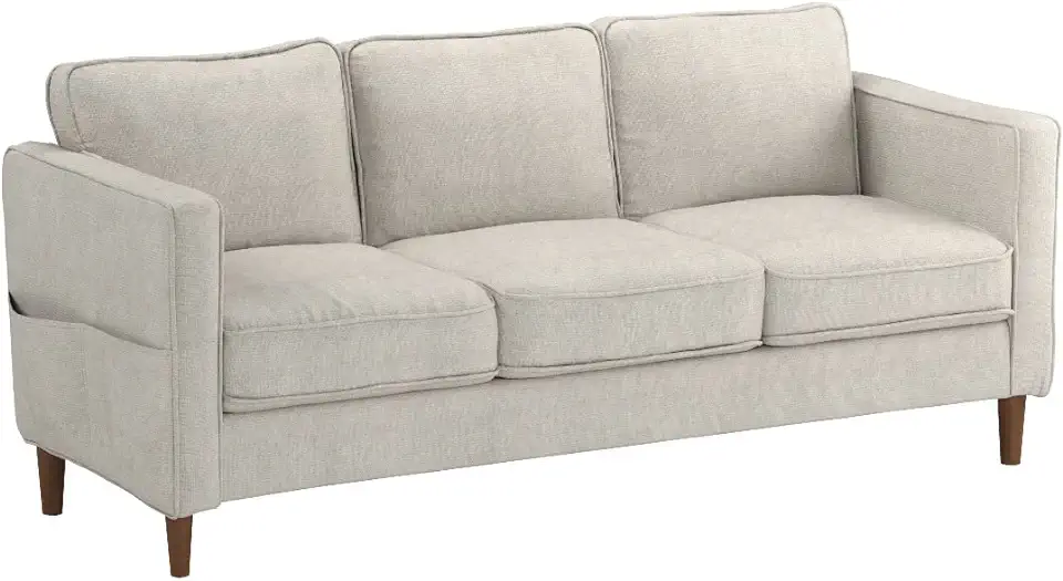 Mellow HANA Modern Linen Fabric Loveseat / Sofa / Couch with Armrest Pockets, Sand Grey, 0