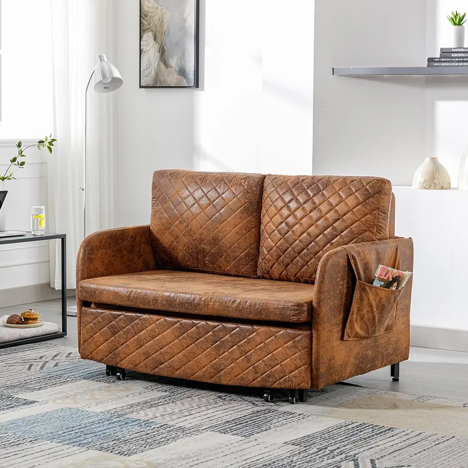 HomSof Convertible Sleeper Sofa Bed, Coffee Modern Loveseat Couch with Pull Out Bed, 2 Pillows and Side Pockets