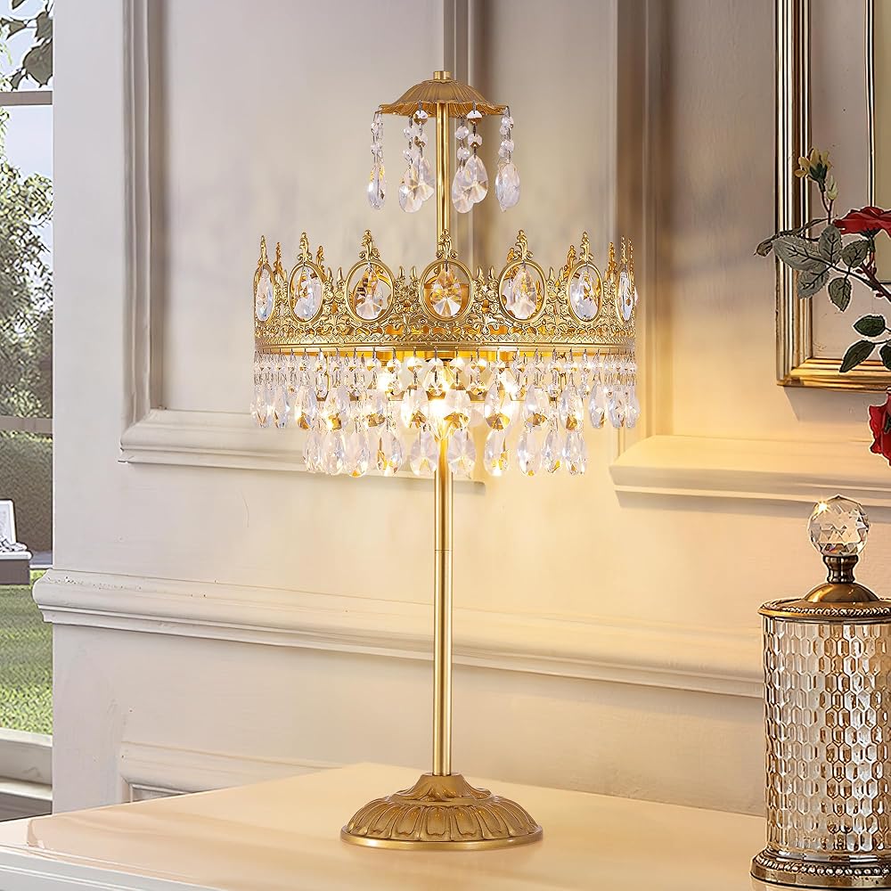 TOCHIC 3 Lights Crystal Table Lamp for Bedroom, 30" Tall Bedside Table Lamp Gold Modern Farmhouse Desk Nightstand Lamp Light Fixture for Living Room, Kids Room, Entryway, Home Office, Console Table
