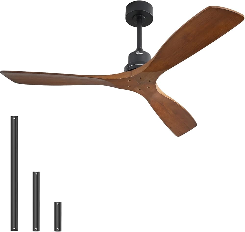 Sofucor 52 Inch Ceiling Fan No Light Outdoor Ceiling Fan Remote Controlled 3 Carved Wood Fan Blades Reversible DC Motor Ceiling Fan Without Light for Farmhouse Modern Style