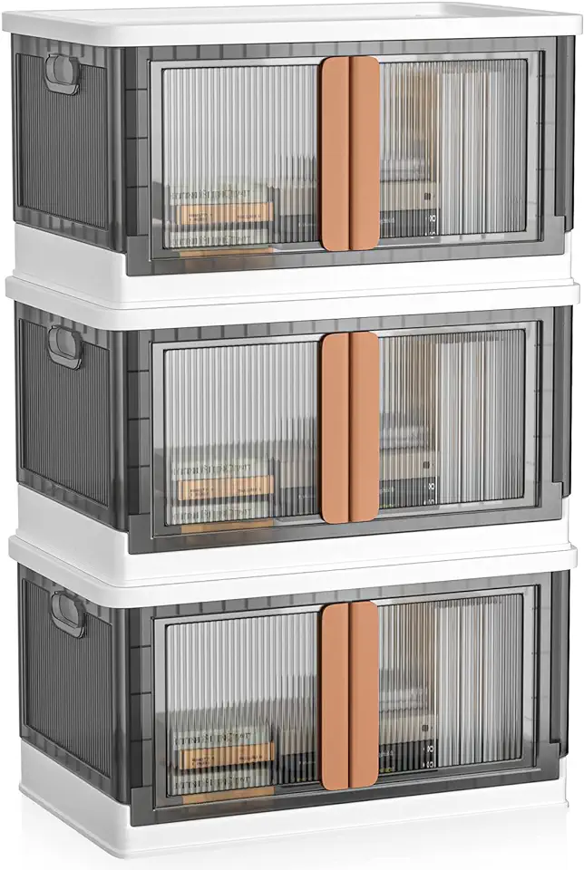 Storage bins,plastic storage bins with lids-76Quart large foldable storage containers,Stackable storage drawers for bedroom, hall, kitchen, RV, office(3Packs)