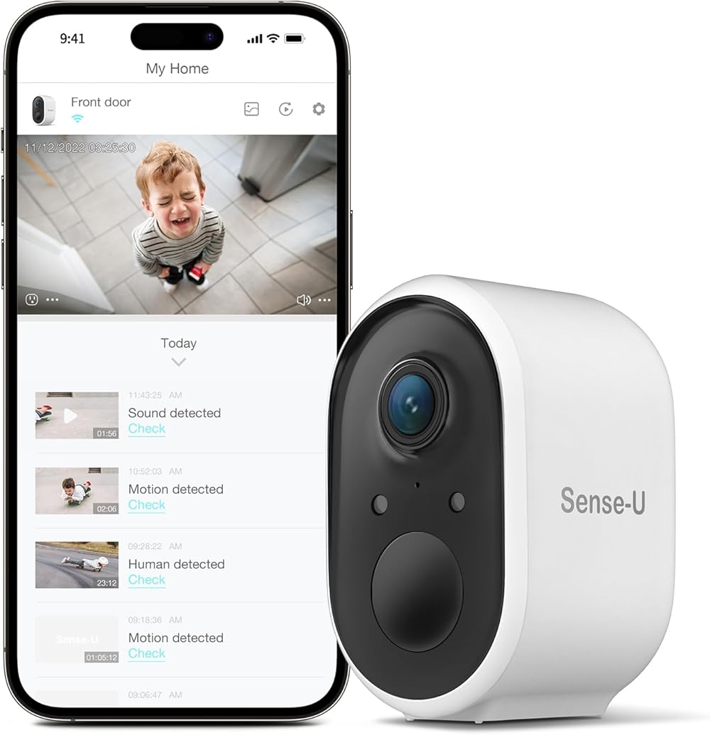Sense-U Security Camera 2 for Outdoor or Indoor, HD Smart Monitor for Baby, Pet, Human, with Night Vision, PIR Motion Detection, Siren Alarm, No Monthly Fee