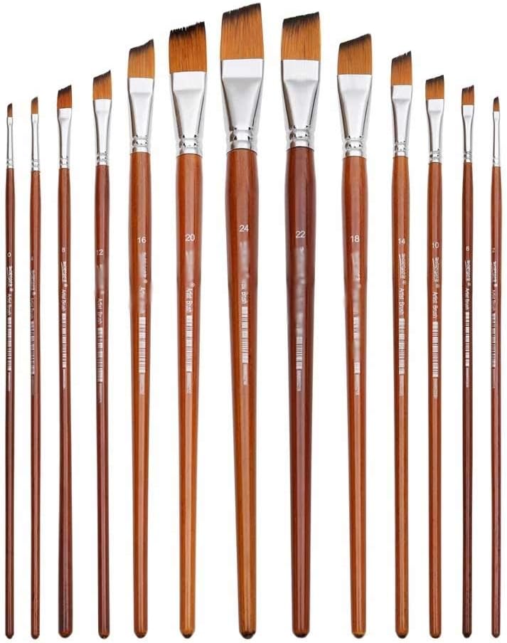 13pcs Angled Paintbrushes Professional Long Handle Paint Brush Oblique Shape Watercolor Painting Oil Acrylic Nylon Hair, FANCU-edr453