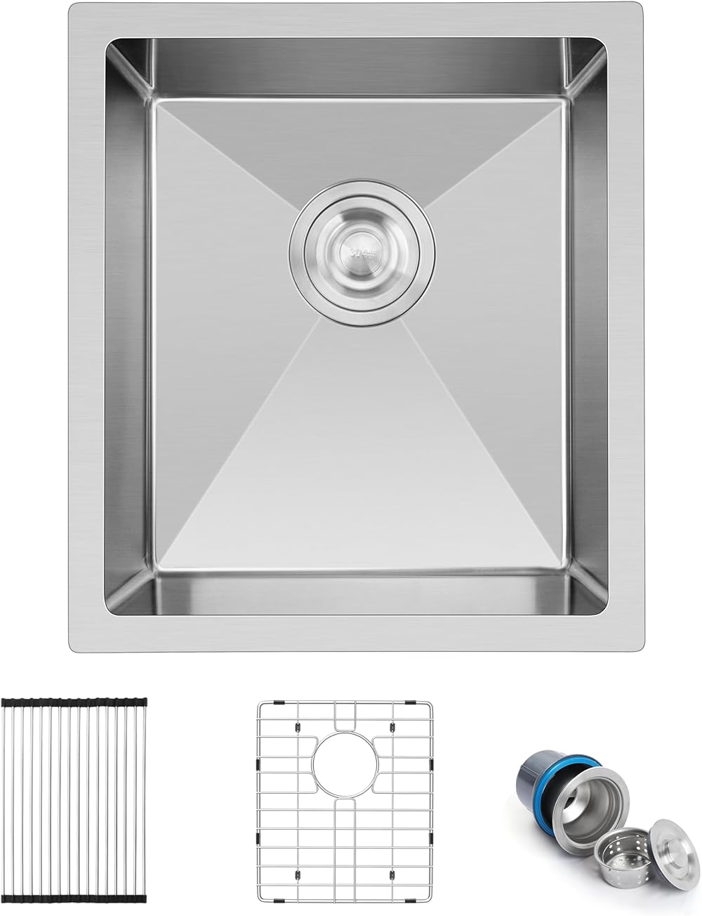 Herogo 15×17 Inch Undermount Kitchen Sink, Stainless Steel Wet Bar Rv Sink, Brushed Nickel Small Single Bowl Sink with Accessories