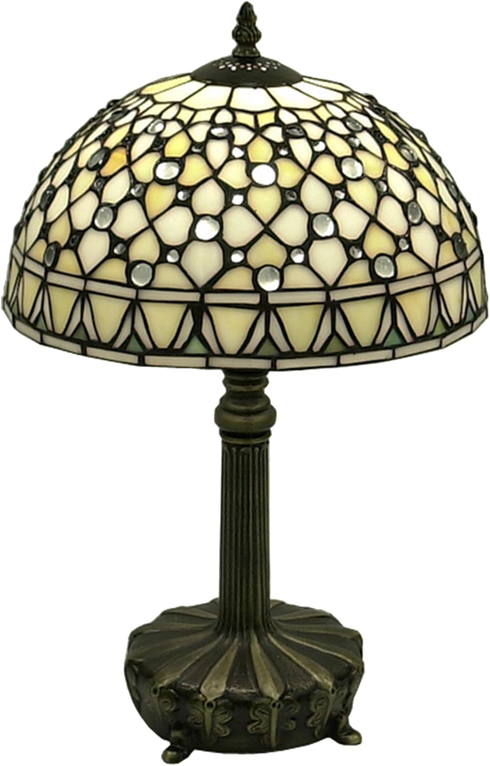 Warehouse of Tiffany T12043TGRA Tiffany-Style White Jewel Accent Lamp, Brown