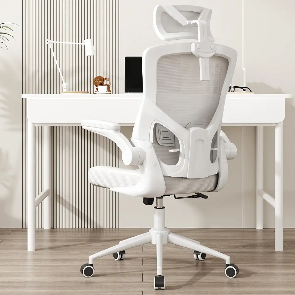 𝑯𝑶𝑴𝑬 𝑶𝑭𝑭𝑰𝑪𝑬 𝑪𝑯𝑨𝑰𝑹, Ergonomic Mesh Desk Chair, High Back Computer Chair- Adjustable Headrest with Flip-Up Arms, Lumbar Support, Swivel Executive Task Chair (Modern, White)