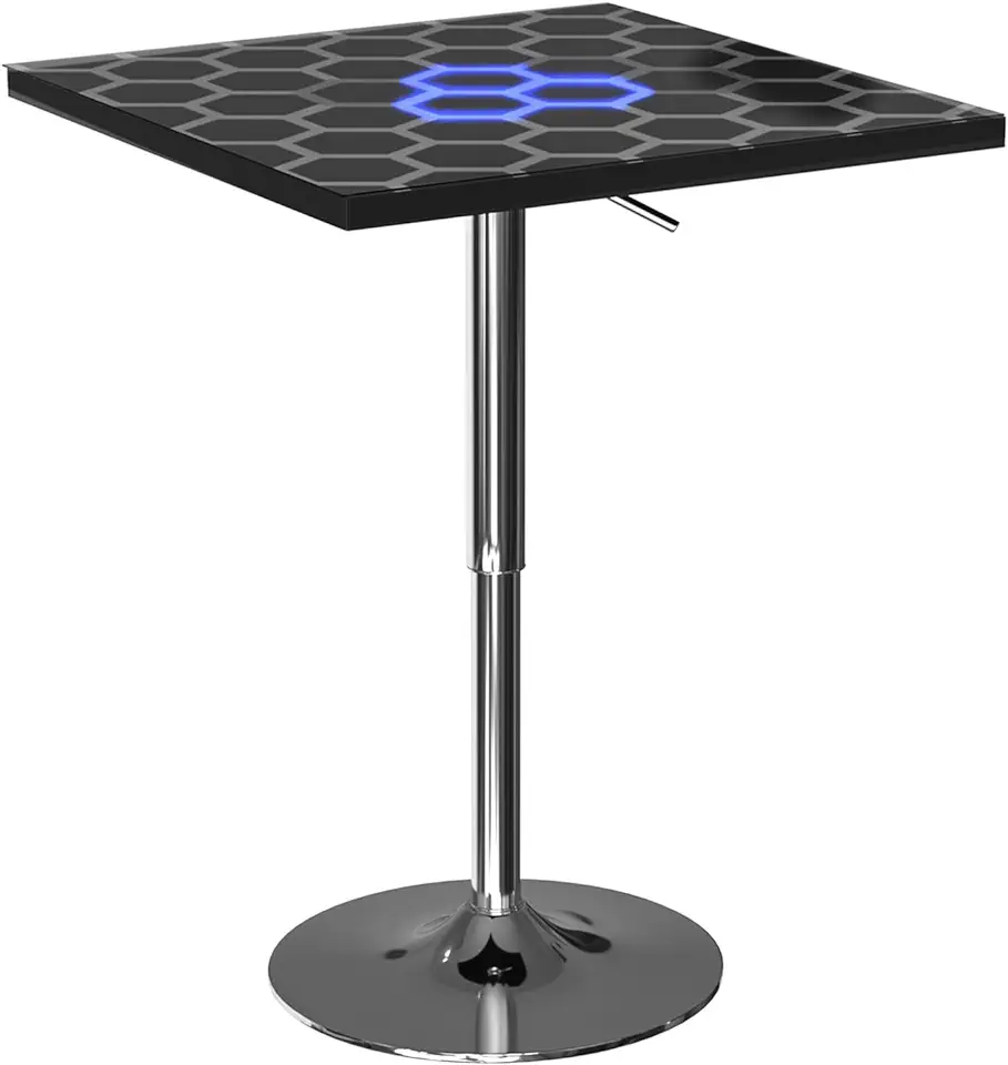 Bar Table Interactive Sensor Table Glowing Table Square Bar Table Cocktail Table Metal Base 23.7-30.7 inch Adjustable,Black