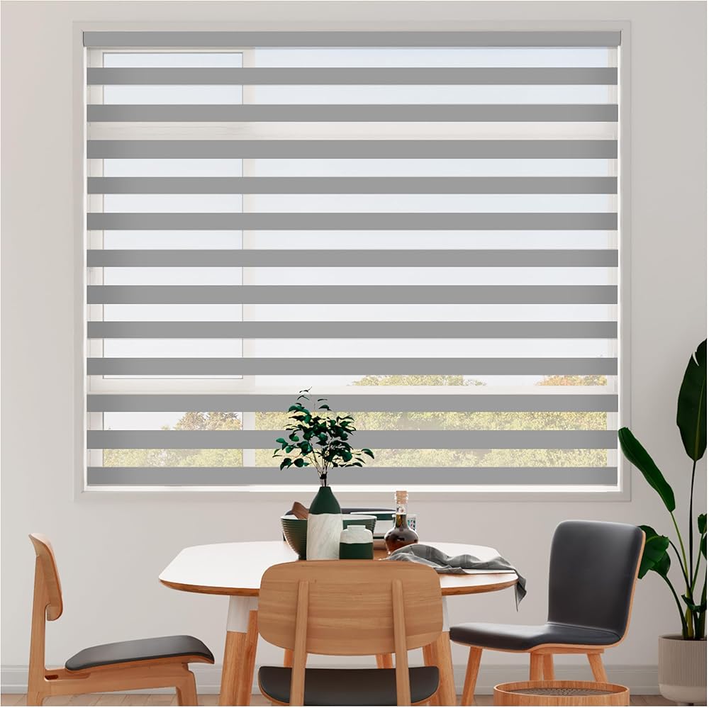 Cordless Zebra Blinds for Windows - Privacy 24" W X 72" H (Grey) 100% Blackout Roller Shades, Dual Layer Roller Blinds & Shades Easy Pull Down, Day Night Blinds for Home & Office