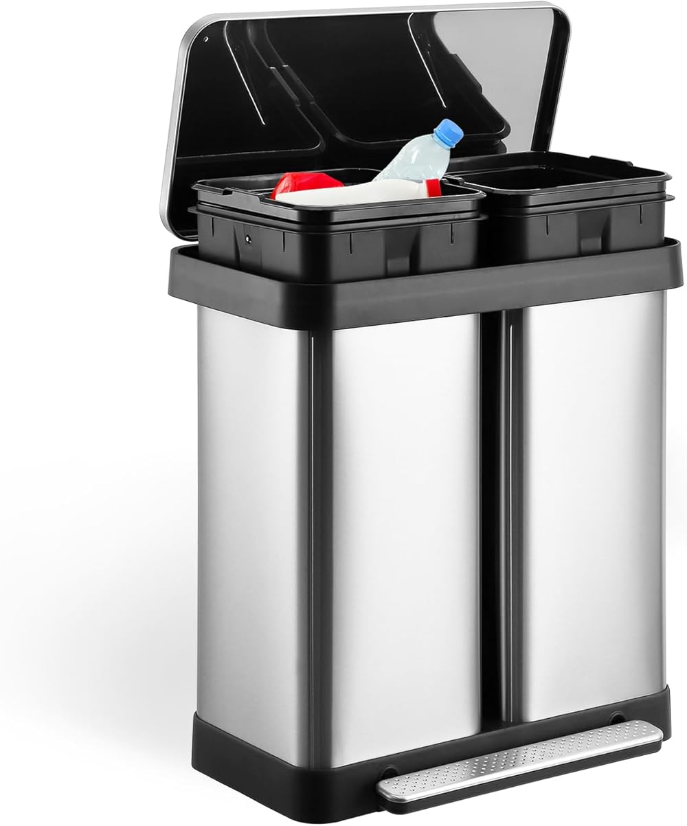 16 Gallon Trash Can, Fingerprint Proof Stainless Steel Kitchen Garbage Can with Removable Inner Bucket and Double Lid, Pedal Rubbish Bin for Kitchen Home Office