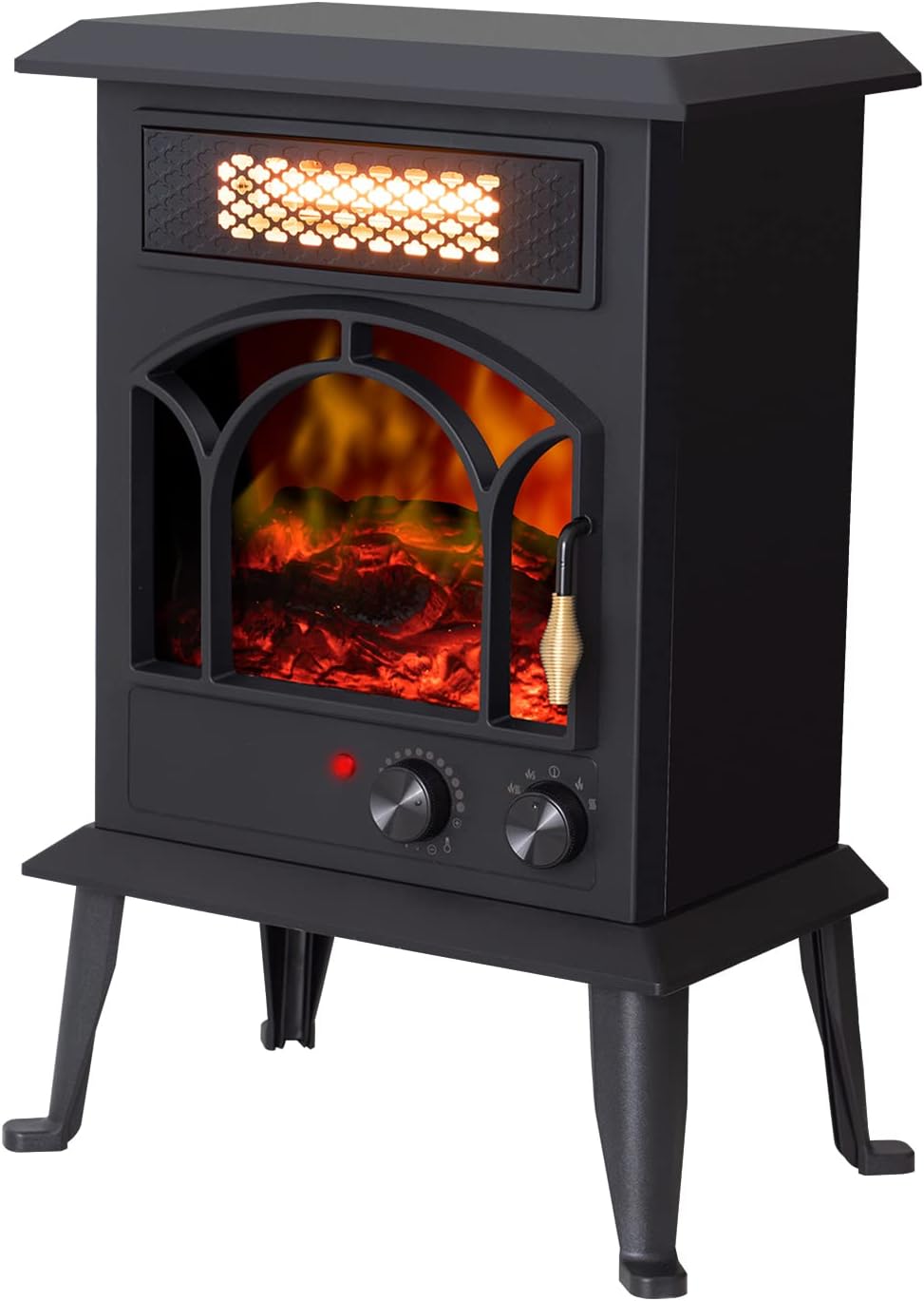 Standing Electric Fireplace Heater – 1500W Portable Infrared Stove with Realistic Flame Effects, 2 Heat Settings, Cool-Touch Exterior, Overheat Safety Shutoff