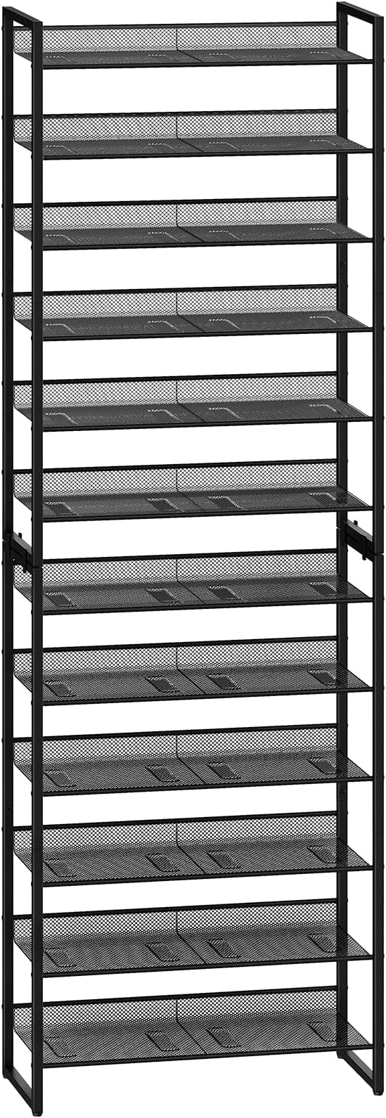 HOOBRO 12-Tier Shoe Rack, Shoe Storage Organizer for Closet, 6-Tier Stackable Shoes Shelf Set of 2, Holds 36-50 Pairs, Narrow and Tall Shelves for Entryway, Hallway, Garage, Black BK122XJP201
