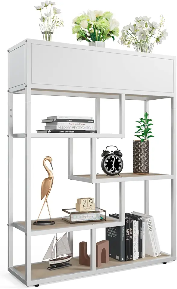 Bookshelf 4 Tier Modern Bookcase, Multifunctional Flower Stand and Bookshelf, Modern Plant Display Rack for Home Decor, Freestanding Open Book Shelves for Bedroom,Office, White