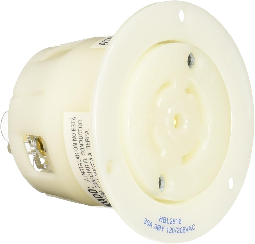 Hubbell Wiring Systems HBL2816 WP2 Insulgrip Twist-Lock Wall Plate Flanged Receptacle Weatherproof Cover, 30 Amp, 120/208VAC, 4 Pole, 5 Wire, Grounding, 3-1/16" Diameter x 2-13/32" Length, White