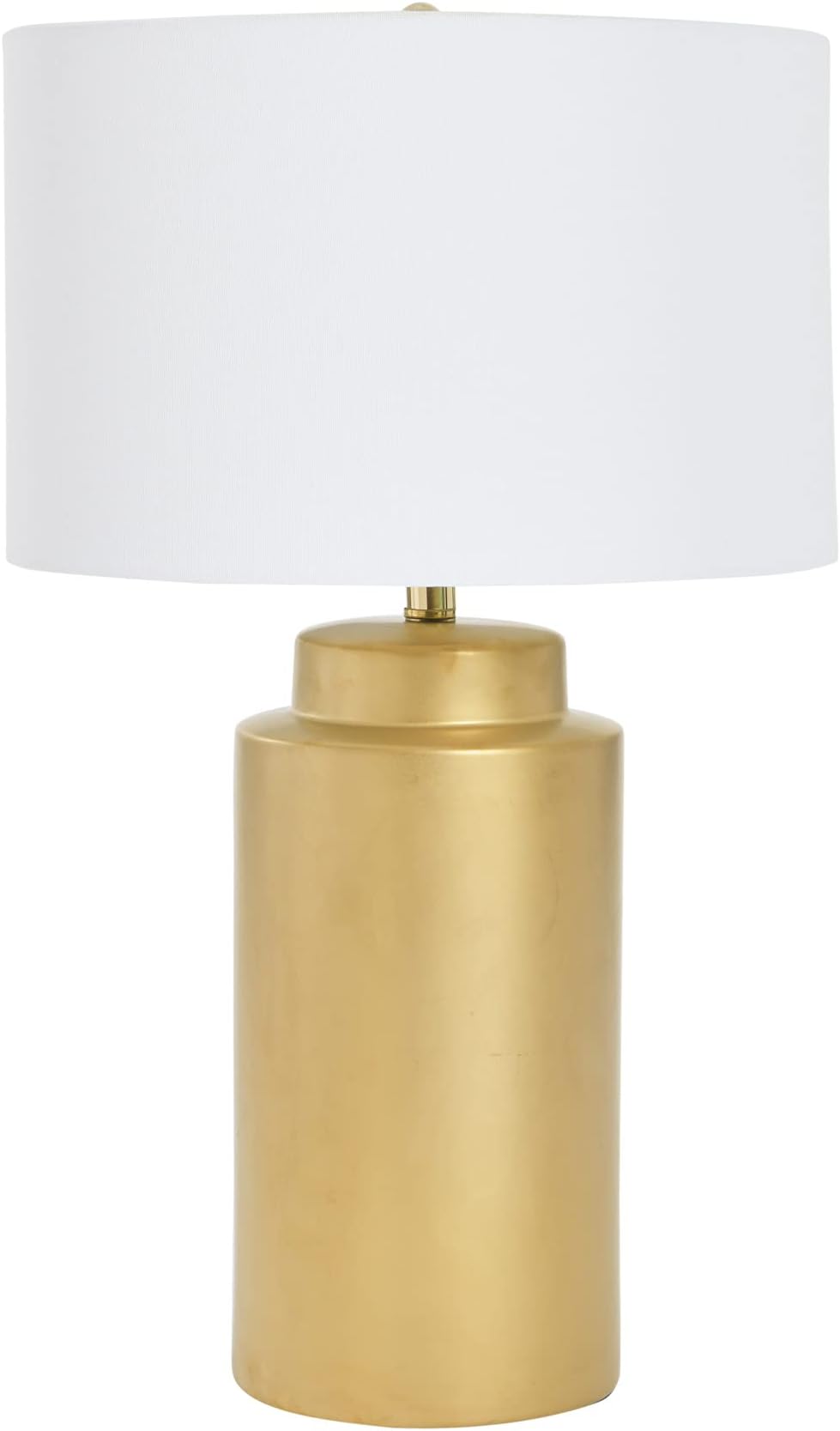 Creative Co-Op Stoneware Cream Linen Shade Table Lamp, Gold