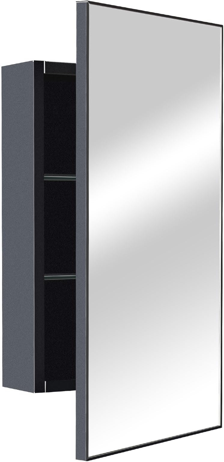 16"x26" Black Bathroom Medicine Cabinet with Mirror, Recessed Rectangle Bathroom Medicine Cabinet with Stainless Steel Framed, Wall Mount Storage Cabinet for bathroom | 2 Adjustable Glass Shelves