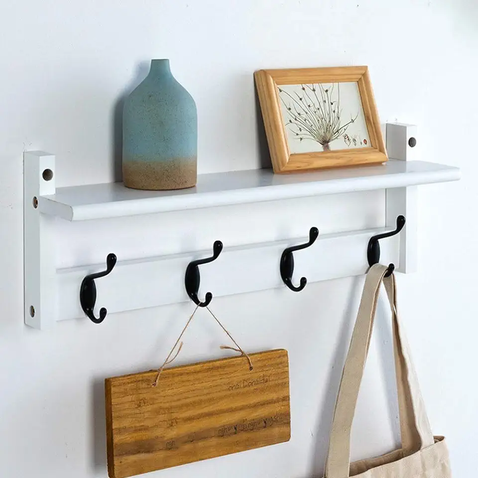 QFFL Coat rack,Coat Hook with Shelf Wall Shelf for Corridor Entrance Living Room Bedroom Kitchen Bathroom- Walnut/White Wall Hanger (Color : White, Size : 4 Hooks)