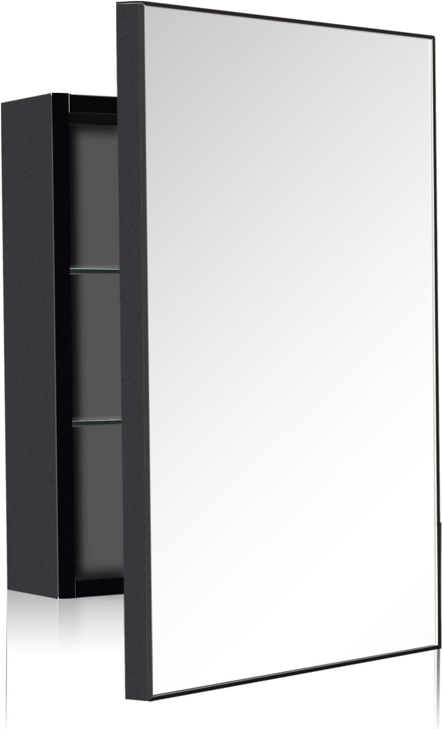 18" x 24" Black Medicine Cabinet with Mirror, Recessed or Wall Mount Single Door Stainless Steel Frame, Bathroom Storage Cabinet with 2 Adjustable Glass Shelves