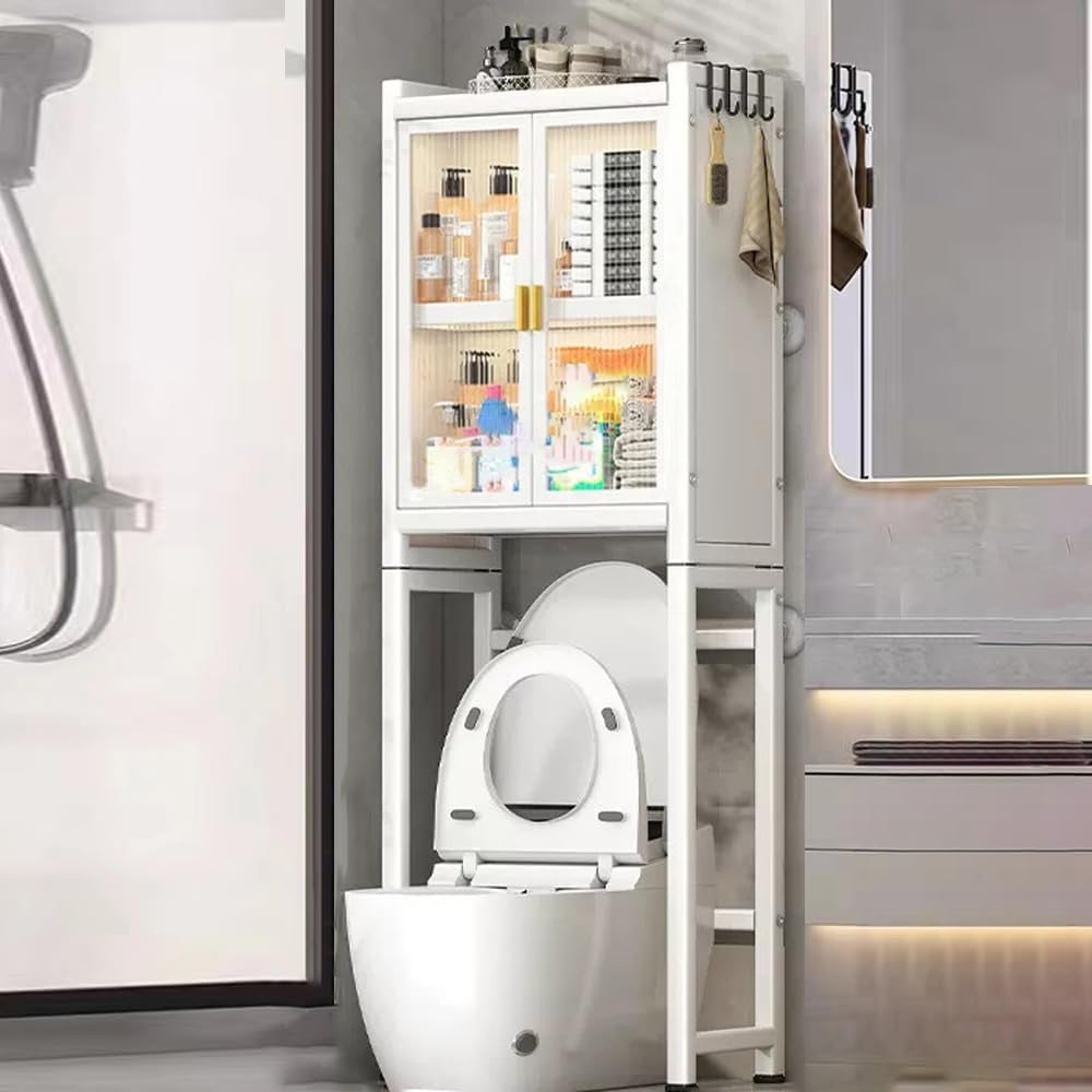 Over The Toilet Storage Cabinet 3 Tier Metal Bathroom Shelf Over Toilet Bathroom Storage Cabinet Organizer,Freestanding Over Toilet Bathroom Storage Cabinet with Rack,for Laundry White