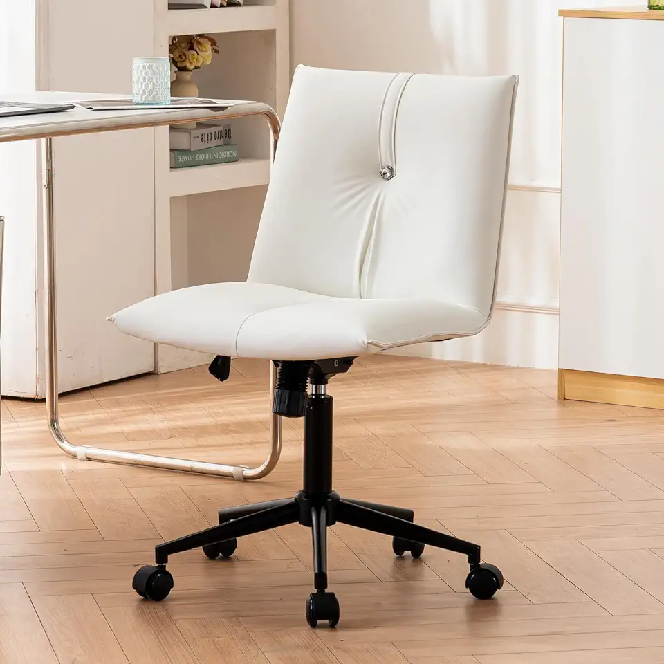 YOUTASTE Office Chair Armless Desk Chair with Wheels, Comfortable Upholstered Computer Task Chairs with Back Support, Adjustable Modern Swivel Rolling Vanity Chair for Home Bedroom, White