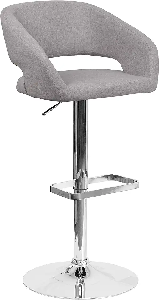 Flash Furniture Erik Contemporary Adjustable Height Barstool with Footrest and Rounded Mid-Back, Upholstered Bar or Counter Height Stool, Gray/Chrome