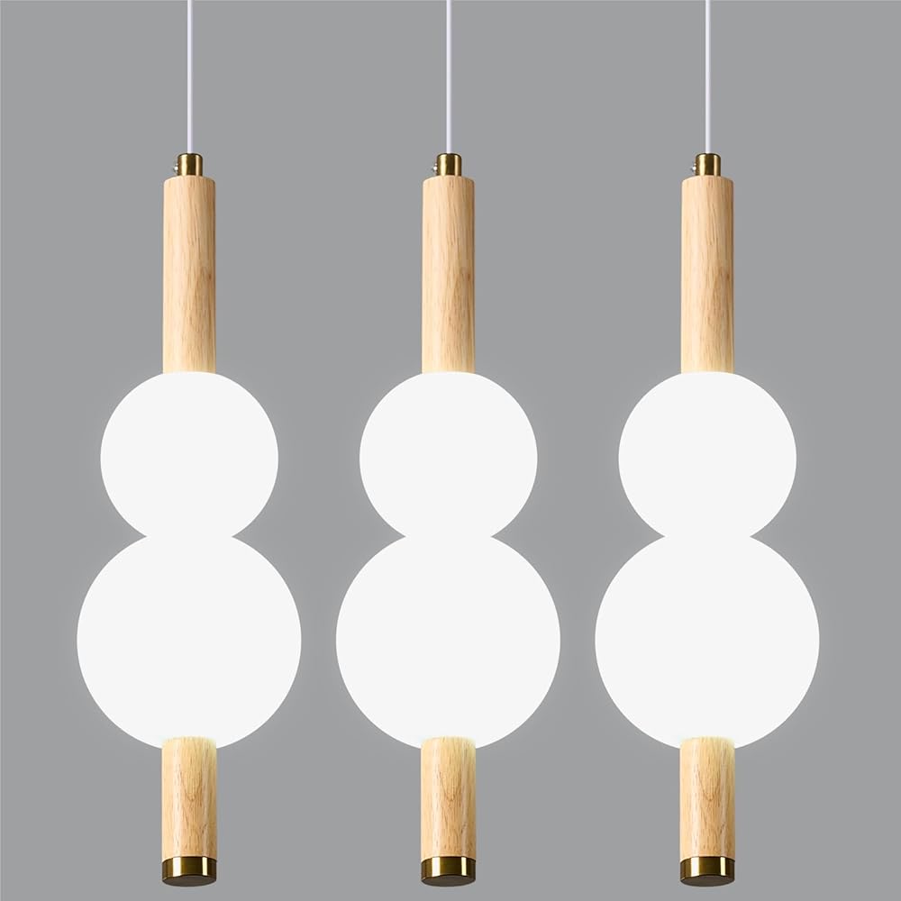 Modern Pendant Lights Kitchen Mid Century Pendant Light Wood LED Ceiling Light Fixture White Globe Lampshade, Pendant Lighting for Kitchen Island Bedroom(3-Pack)