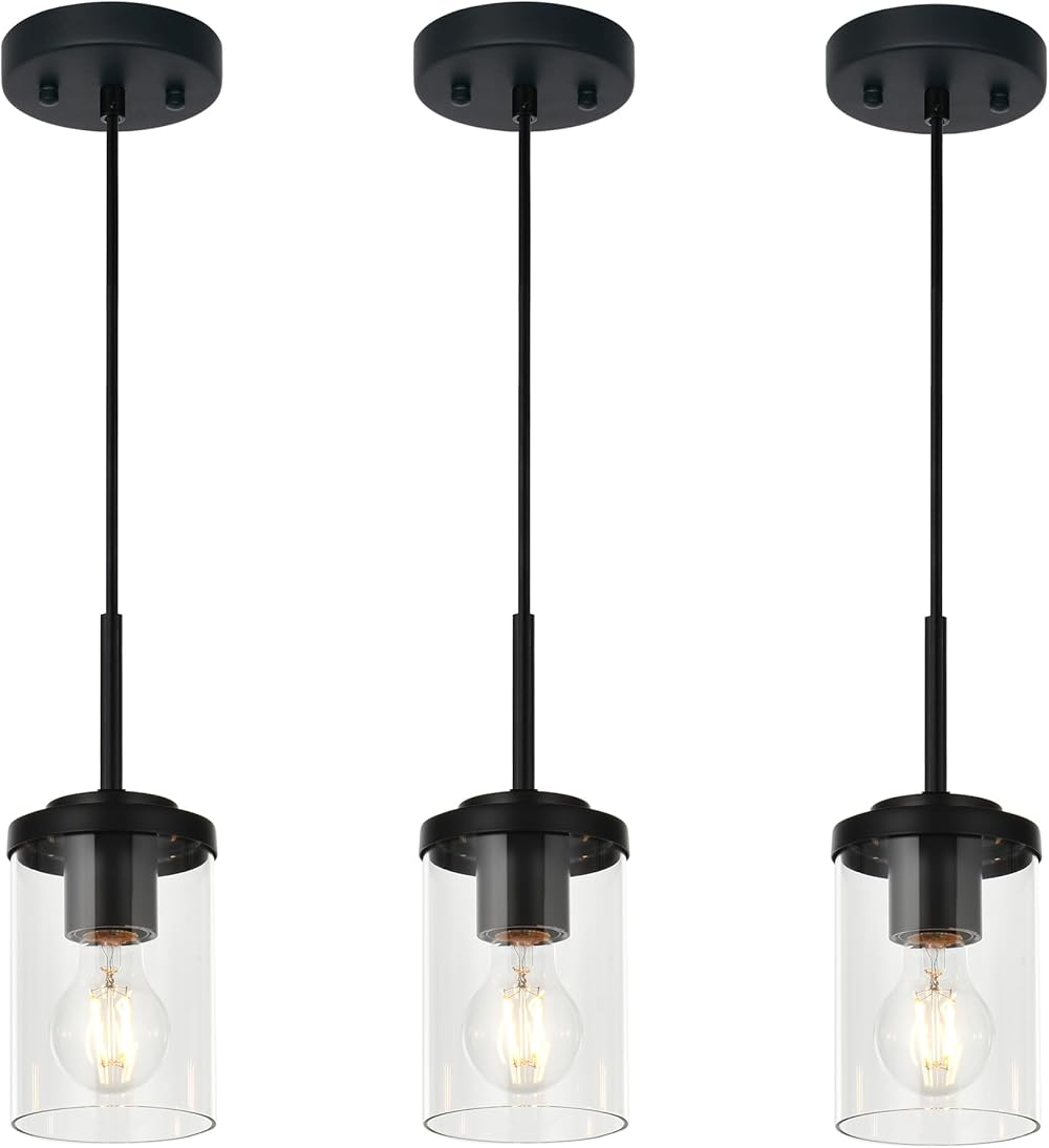BONLICHT Farmhouse Pendant Lighting 3-Pack Kitchen Island Chandelier Modern Black Pendant Lights Industrial Dining Room Light Fixtures Ceiling Hanging Living Room Bedroom Foyer Hallway