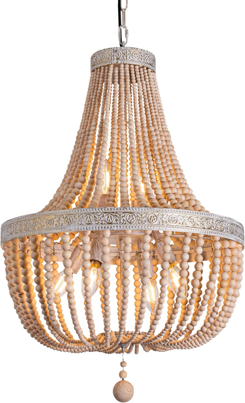 6-Lights Farmhouse Boho Wood Bead Chandelier,Modern Natural Wooden Beaded Pendant Light Fixture,E12 Adjustable Pendant Lighting for Dining Room Living Room Bedroom