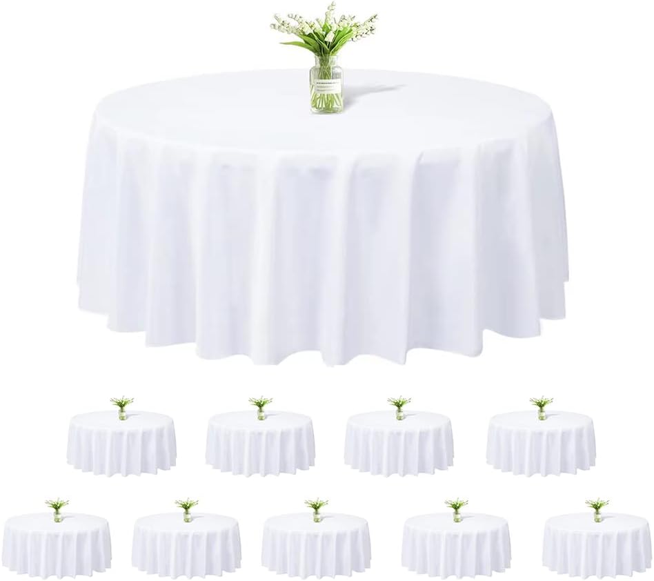 10 Pack Round White Tablecloth - 120Inch (304cm) - Washable Polyester Table Cloth Decorative Fabric Table Cover for Wedding,Restaurant,Party.