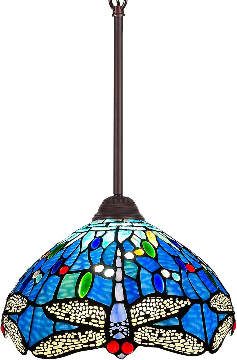 Capulina Tiffany Pendant Lights 12 Inches Wide Blue Dragonfly Antique Style Stained Glass Hanging Lamp for Home Kitchen Island Counter Dining Room Hallway