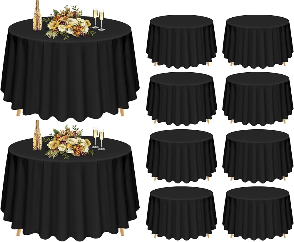 Pesonlook 10Pack Black Round Tablecloth120 Inch Premium Washable Polyester Resistant Round Table Cover for Wedding Party Dining Banquet Buffet Table Holiday Dinner Tables Decorate
