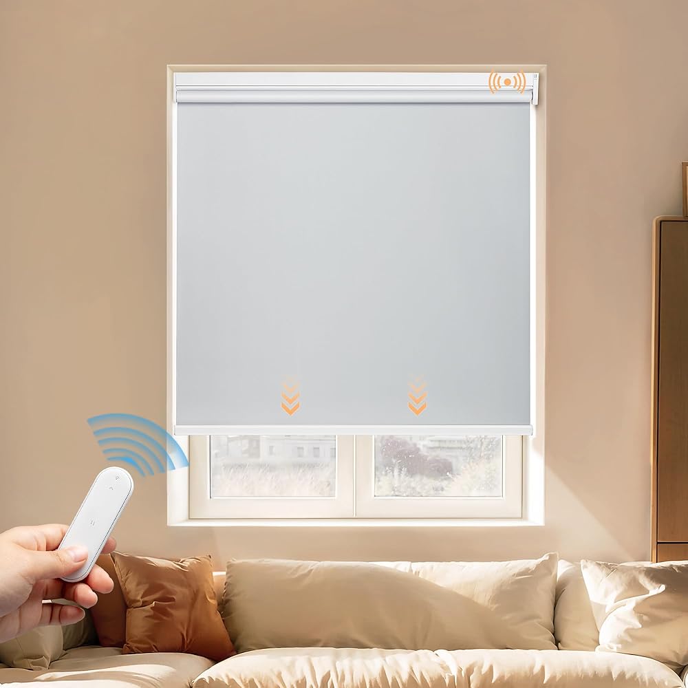 Motorized Smart Blinds for Window with Remote Control, Blackout Motorized Roller Shades Cordless for Home and Office, Grey, 35" W x 72" H