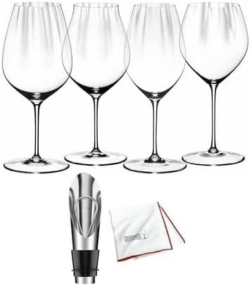 Riedel Performance Wine Glasses (4-Pack, Clear) Bundle with Wine Pourer with Stopper and Large Microfiber Polishing Cloth (6 Items)