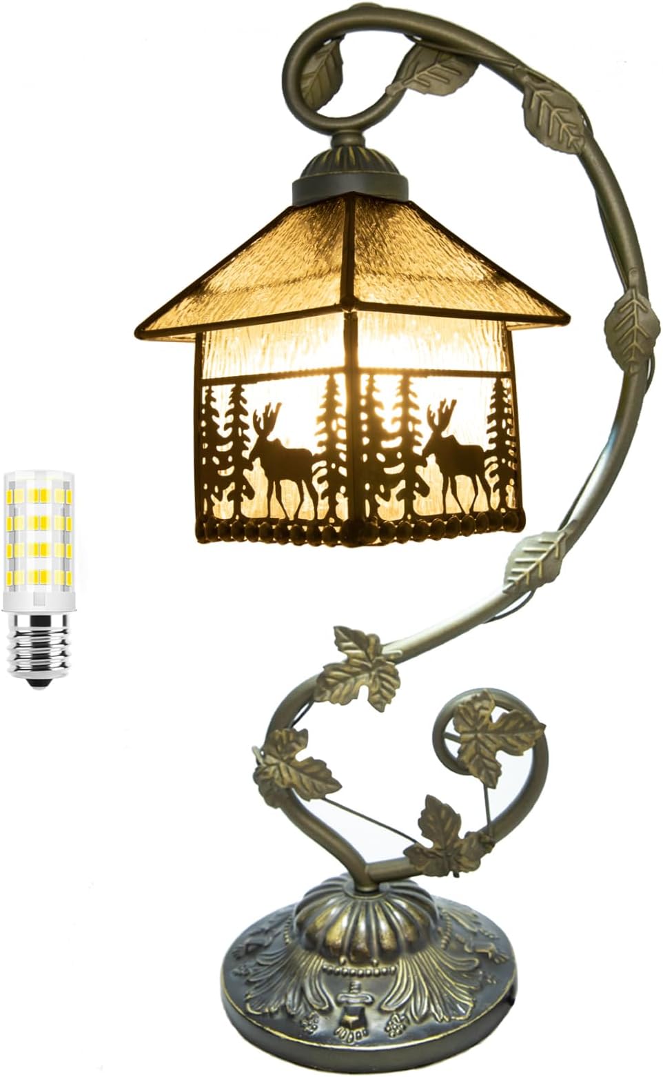 Tiffany Lamp,21x11x8inches Stained Glass Lamp,Deer House Tiffany Style Table Lamp with Three-Color Dimming for Bedside Table,Dining Table,Antique Office,As A Gift to Family and Friends