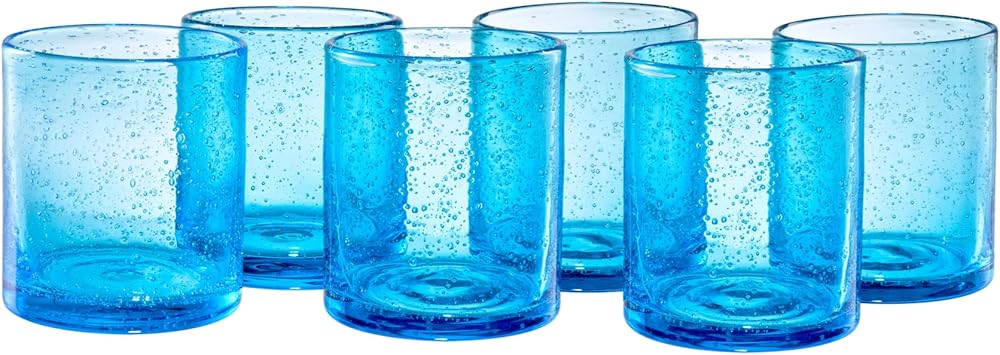 ARTLAND Iris Turquoise Seeded 12 Piece Double Old Fashioned Glass and Highball Tumbler Set