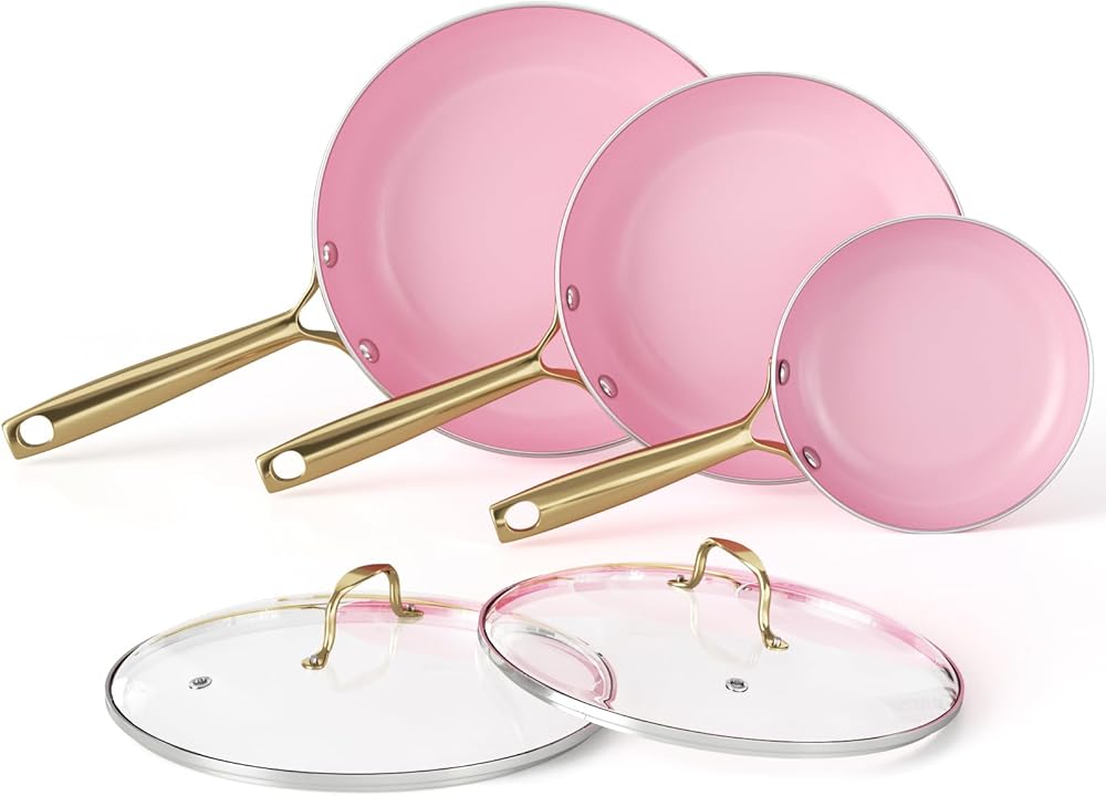 Frying Pan Set with Lids-Pink Nonstick Frying Pan Sets,8 inch,10 inch and 11 inch Skillet Set Egg Omelette Pans,Pan Set for Cooking,PFOA Free Healthy and Non Toxic with Stay Cool Handle