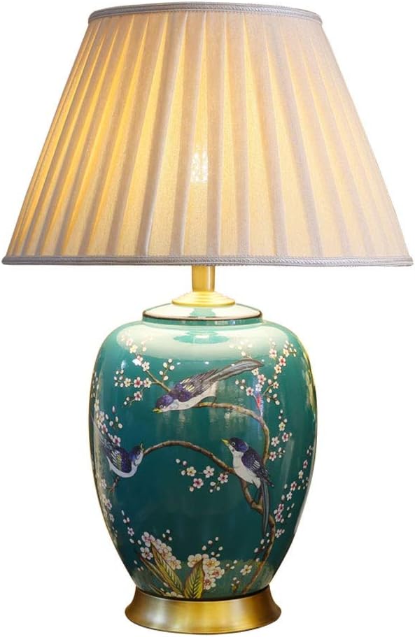 Table Lamp Bedside Table Lamp Nightstand Desk Lamp Bedroom Light with Fabric Lampshade Table Lamp for Bedroom, Living Room, Bookcase Desk Lamp (Color : Green, Size : Remote Control Switch)