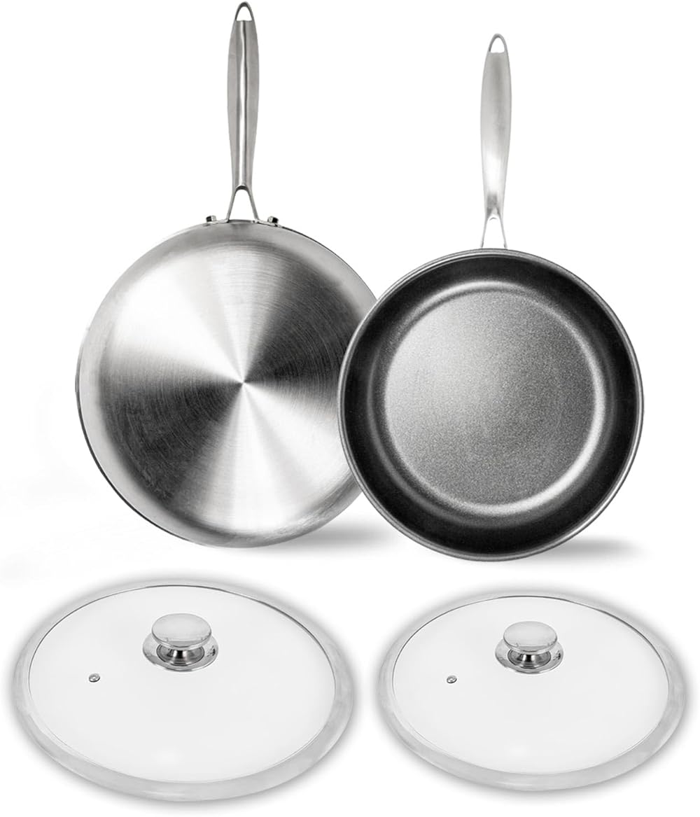 2 Pack Nonstick Frying Pan Set with Lid, 10 inch & 12 inch Non Stick Stainless Steel Skillet with Handle - PFOA Free, Oven Safe Non-stick Teflon Coating Induction Cooking Cookware, 10" & 12"
