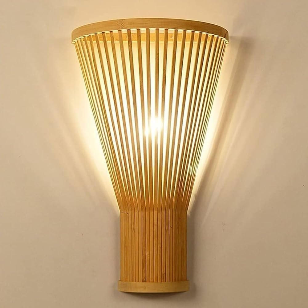 Rattan Wall Sconce E27 Indoor Bamboo Wooden Wall Lamp with Wicker Rattan Braid Shade Base Wall Mounted Lighting for Living Room Bedroom Hallway Wood + Bamboo