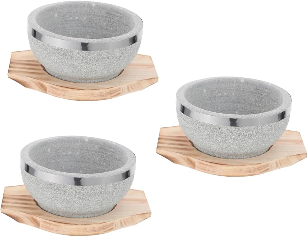 IMIKEYA 3pcs Stone Bowl Soup Bowl Bibimbap Bowl Japanese Hot Pot Donabe Korean Food Cooking Bowl Korean Cooking Dolsot Ceramic Bowl with Base Pot Bibimbap Wood Soup Pot Cooking Stone Pot