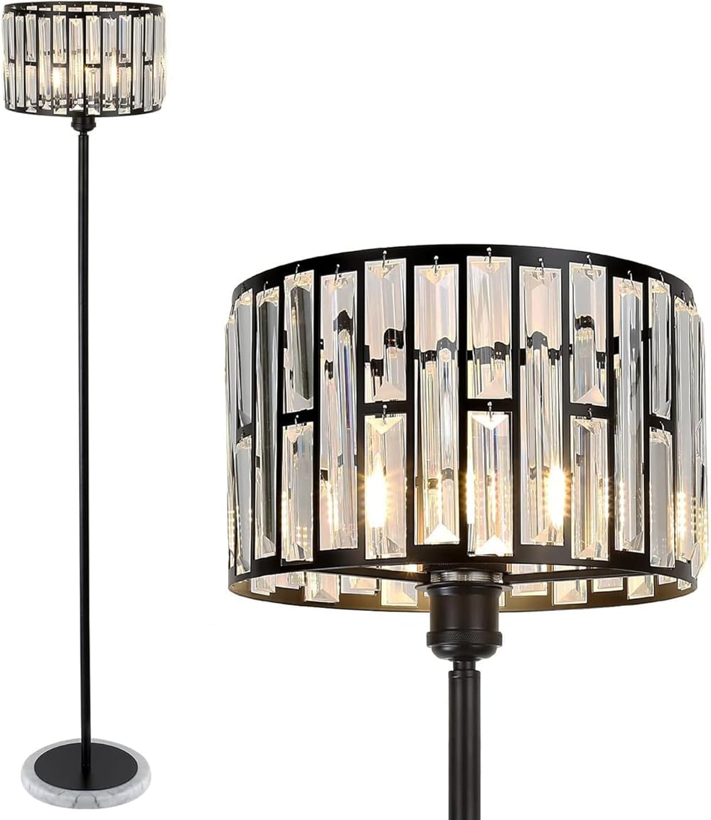 Crystal Floor Lamp, Modern Crystal Standing Lamp, Elegant Black Floor Lamps with Foot Switch for Living Room, Bedroom, Dresser, Reading Room and Office