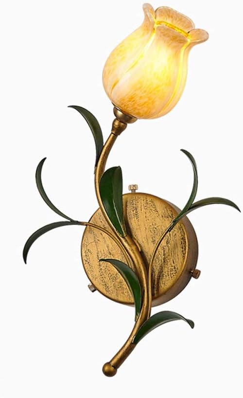Nostalgic Elegant Metal Wall Lamp Lantern E14 Personality Garden Flower Bedside Wall Sconce Creative Simple Staircase Aisle Wrought Iron Glass Decorative Lighting Wall Light Stylish (Color : 1-l