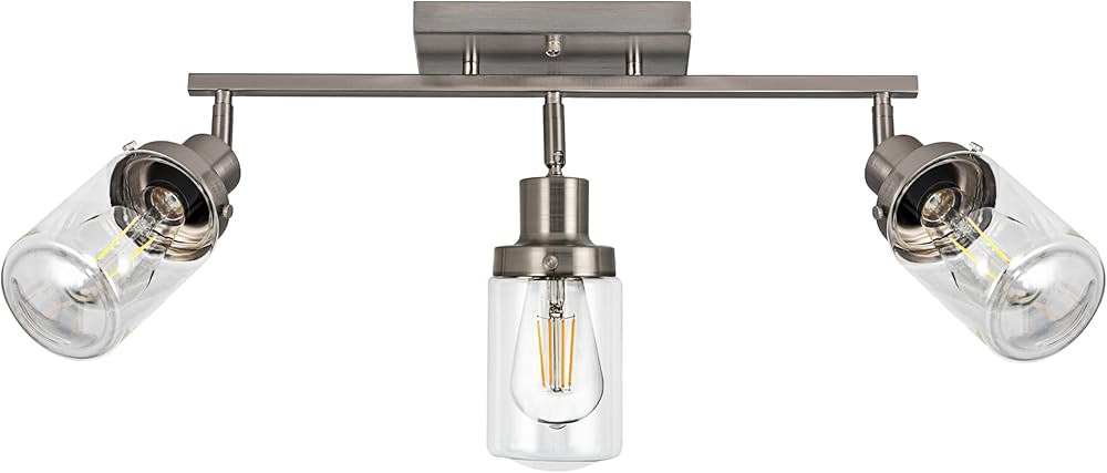 Modern Satin Nickel 3 Lights Adjustable Track Lighting Kits Industrial Flush Mount Ceiling Spotlights Multi-Spot Ceiling Track Light Fixture Modern Wall Light