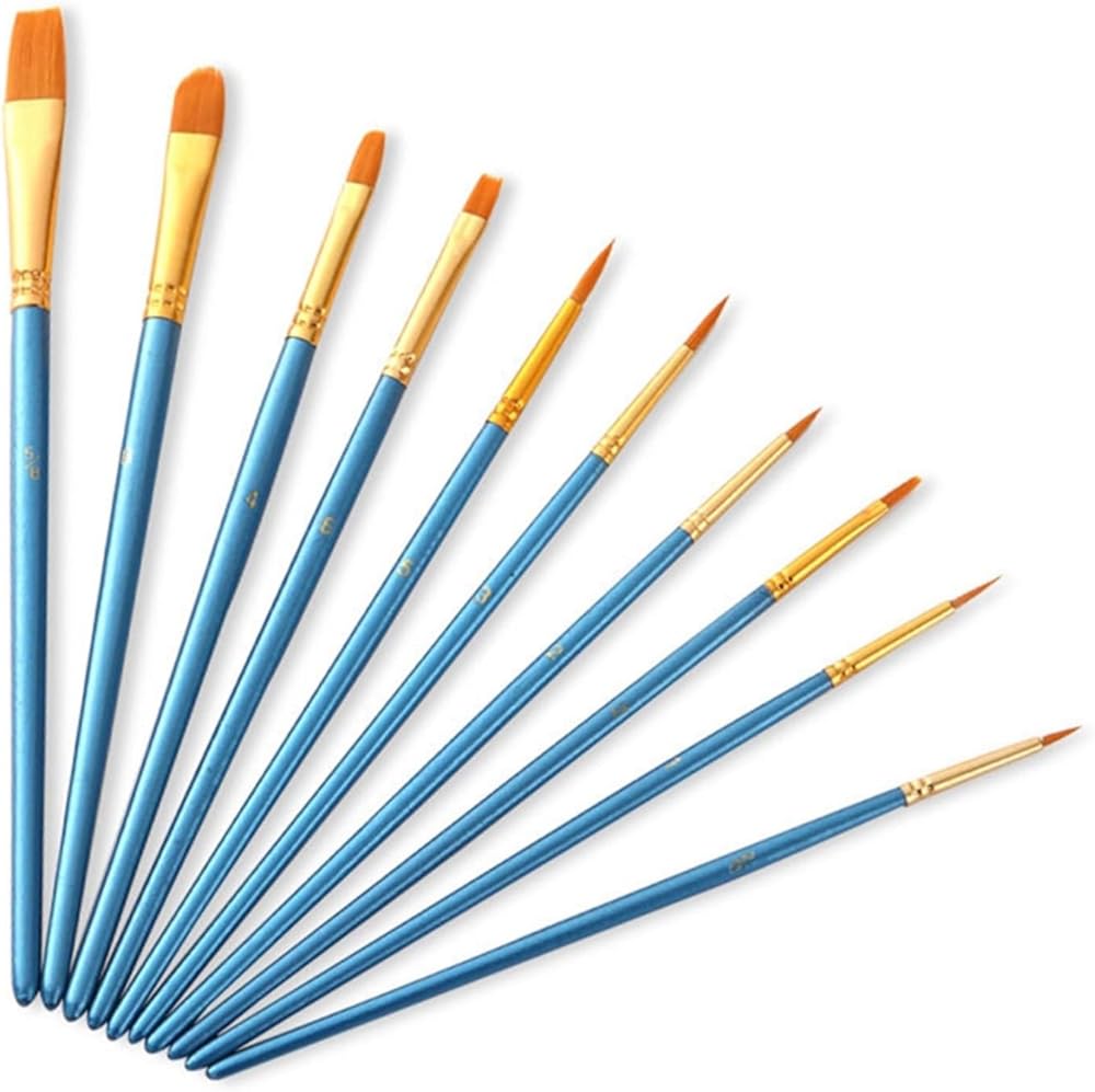 DFHBFG 10Pcs Nylon Paintbrush Kit Wooden Paint Brushes Art Set for Canvas Rocks Watercolor Gouache Acrylic Oil Painting(Color:Blue)