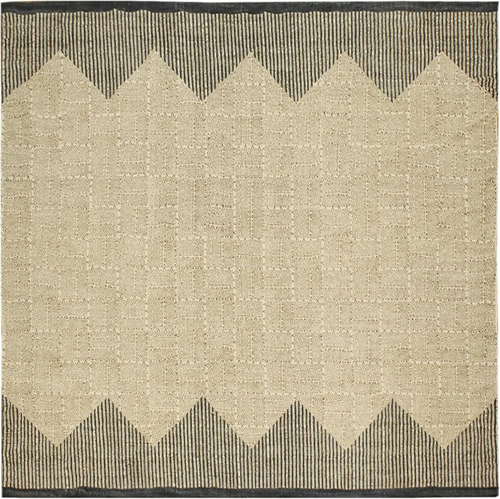 Collection Square Rug - 5x5 Ft Brown & Black Cotton Dhurrie Striped Kilim Rug Indoor Outdoor Use Carpet Flatweave Rug High Traffic Area in Bedroom Bedside & Dining Table Doormat