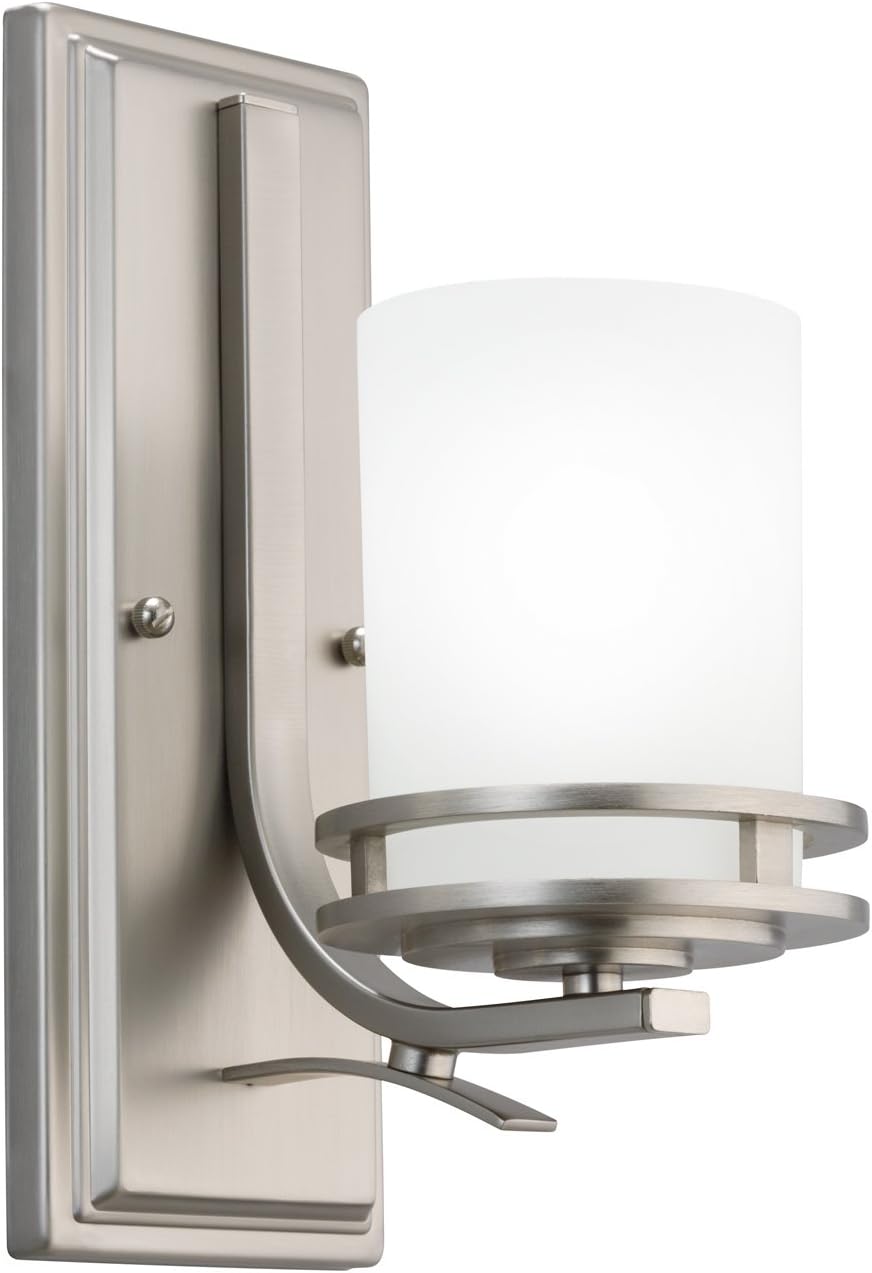 Kichler Hendrik 12" Wall Sconce in Brushed Nickel, 1-Light Modern Wall Mount Light with Satin Etched Cased Opal Glass, (12" H x 5.25" W), 5076NI, 24.75 in