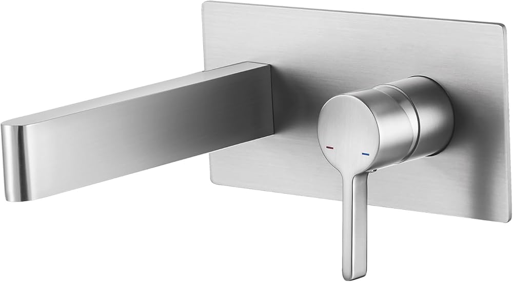 Wall Mount Bathroom Sink Faucet Solid Brass, Brushed Nickel 2-Hole Single Handle Wall Bathroom Vanity Faucet or Bathtub Faucet with Rough in Valve Included for Lavatory Tub Basin